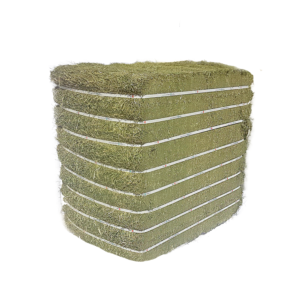 It consists of first-cut forage from pastures of mixed grasses/legumes (Graminaceous: Phleum pratense, Lolium italicum, Lolium perenne, Poa pratensis, Dactylis glomerata, Bromus inermis, Bromus catharticus and Legumes: Medicago sativa) selected, suncured or dehydrated and pressed into bales.