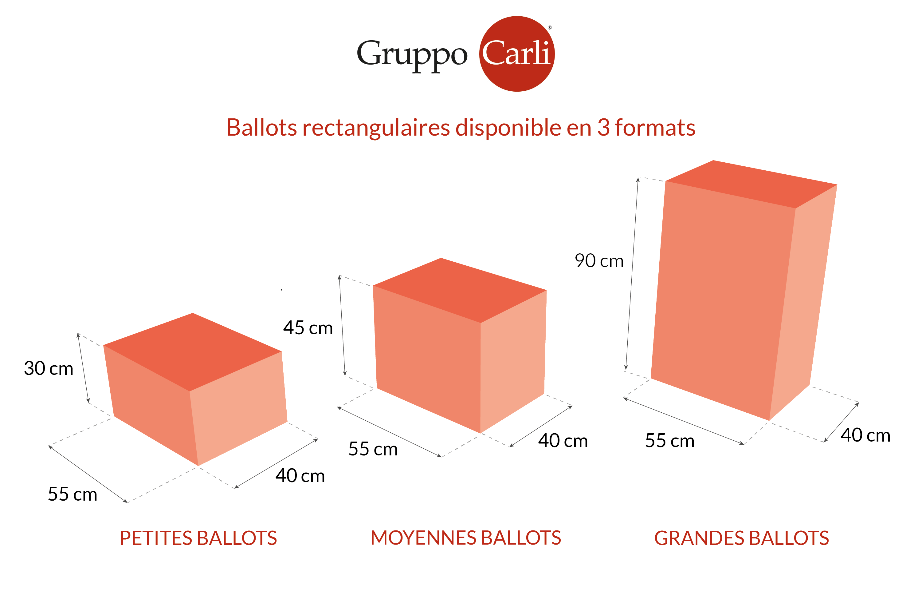 Fournies en vrac ou en blocs emballés, avec ou sans palette.